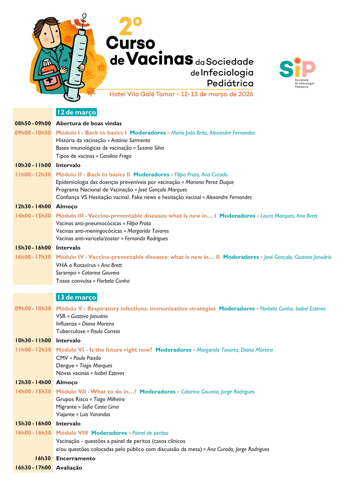 Com um programa abrangente, que corresponde aos desafios do presente e do futuro próximo, procuramos partilhar e discutir o estado da arte da vacinologia e das principais doenças evitáveis por vacinação.