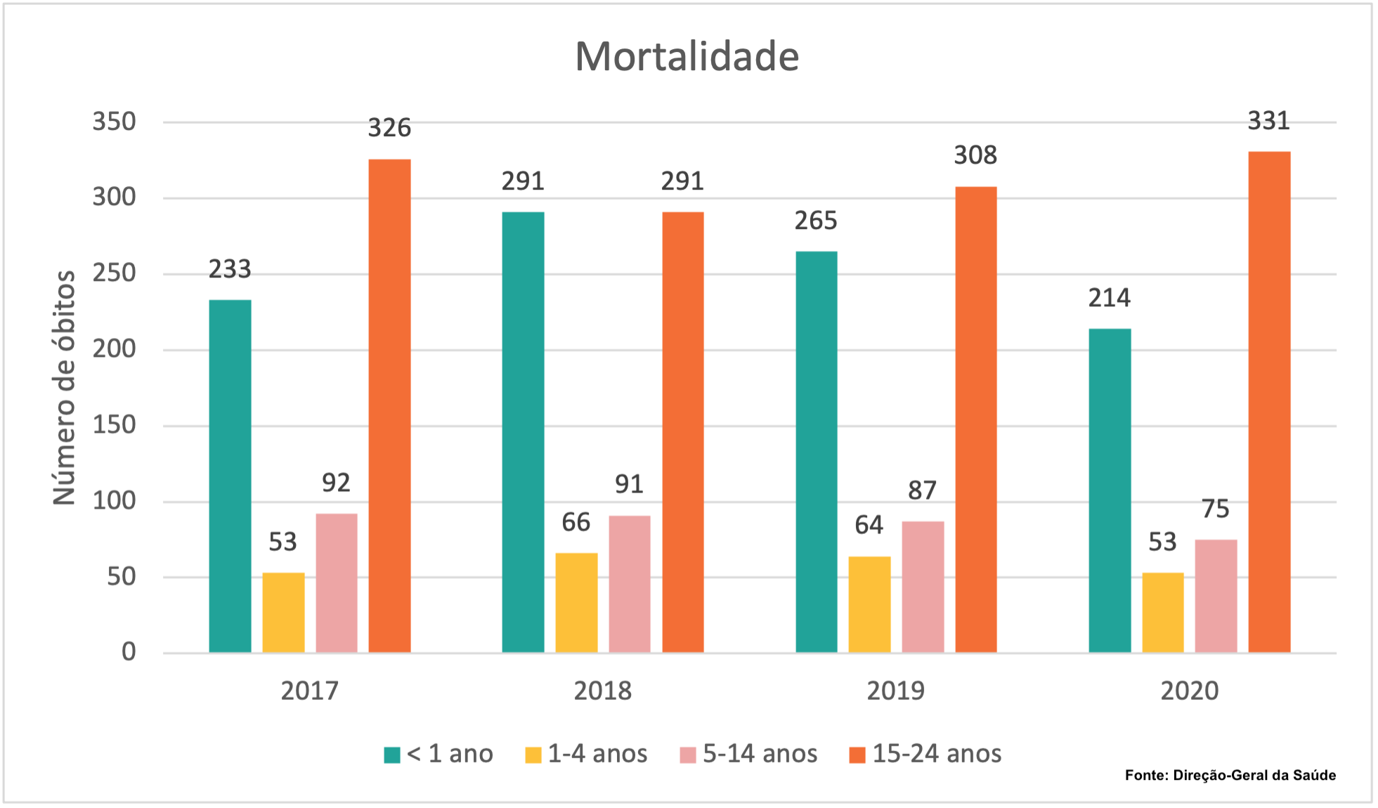 Figura 1: Mortalidade população portuguesa com idade igual ou inferior a 24 anos entre 2017 e 2020